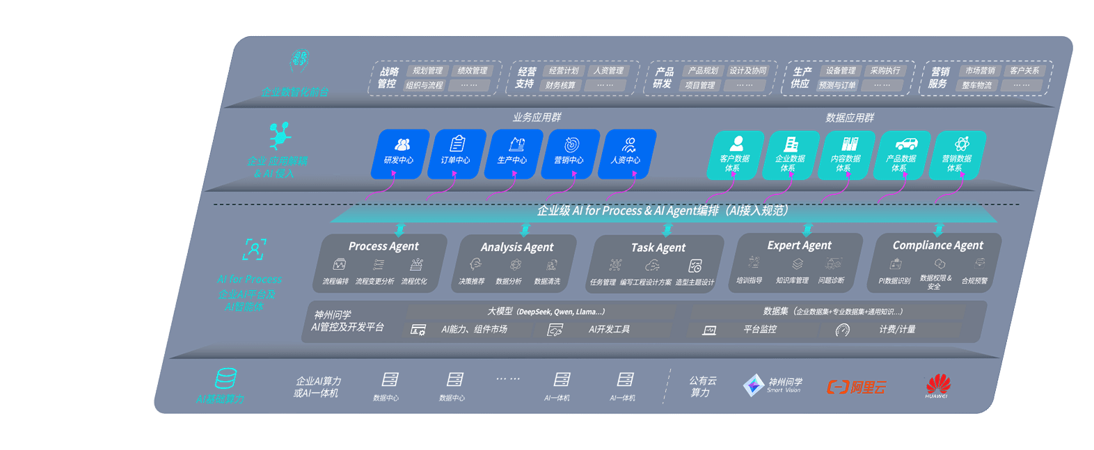 智博1919问学智车解决方案是一套基于AI技术的汽车行业智能化系统,,,,覆盖从底层算力到顶层AI应用的全栈方案。。。方案由算力层、、模型层和应用层组成:算力层,,,,方案支持多种一体机配置,,,具备云端灵活部署、、、、多云适配以及动态优化计算资源的能力;模型层,,,,智博1919问学平台版提供了企业级AI应用一站式构建与管理平台,,支持基于后训练强化技术的汽车企业专属模型的训练、、、评测和运营;应用层,,,智博1919问学DeepSeek版提供包括超级员工、、、智能招采、、、、智能营销、、智能客服、、、AI for BI等一系列解决方案,,,,可助力汽车行业实现数字化转型,,,让管理更智能、、、、响应更敏捷。。。